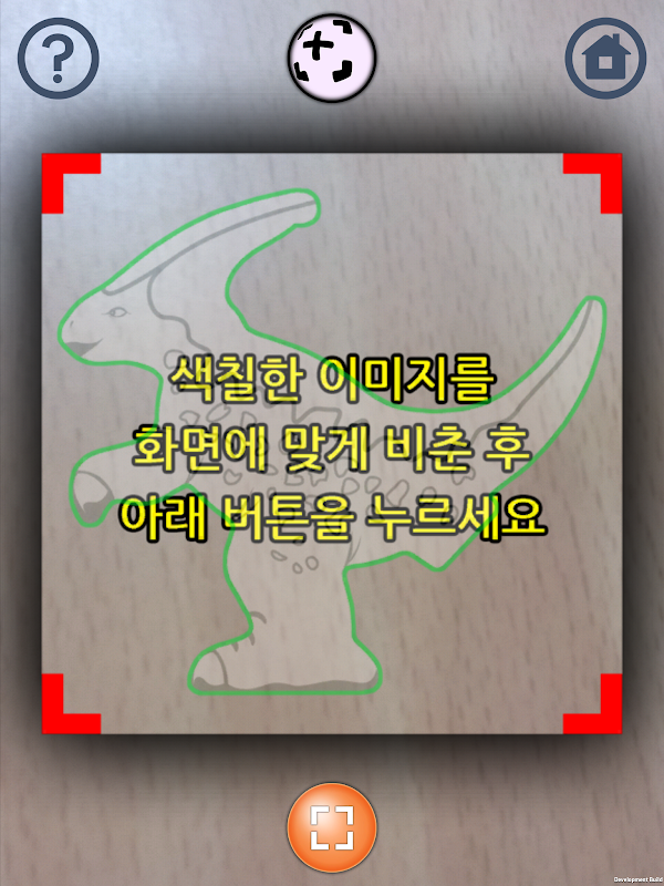 2. ‘에듀알 풍선꾸미기’ 어플리케이션 실행 후 목록에서 콘텐츠를 선택하고 카메라로 화면의 가이드 이미지에 맞게 비춘 다음 인식 버튼을 누르면 마술과 같이 내가 색칠하고 꾸민 풍선이 살아 움직이는 모습을 볼 수 있습니다.