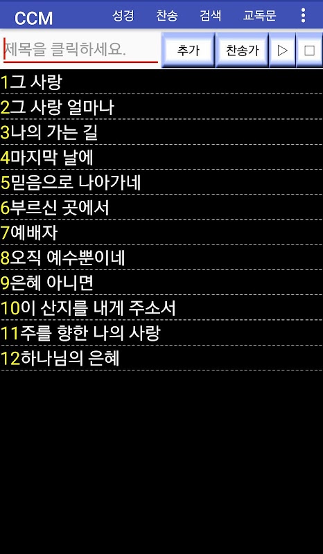 8. 제목이나 가사 검색을 통해서도 찬송을 볼 수 있습니다.
