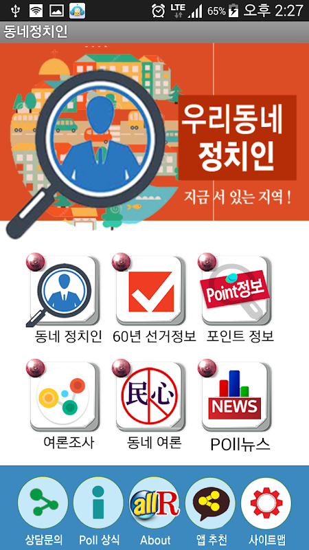 GPS 기반 현 위치의 근방에 있는 정치인, 출마자 정보 서비스와,
