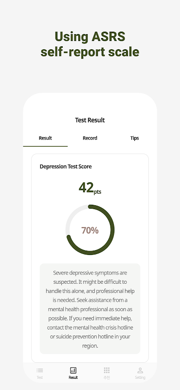 Depresyon değerlendirmesi için hızlı bir kendi kendine teşhis uygulaması.
