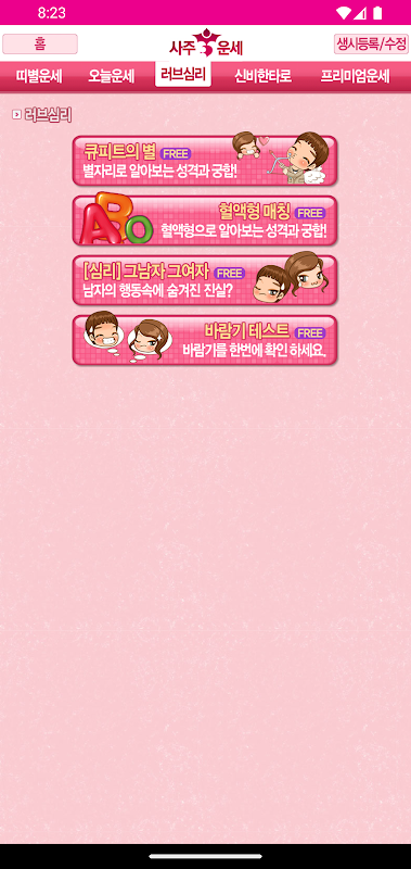 Premium fal hizmetleri, yıllık fal ve sevgili uyumu için ücretli bir hizmet sunar. Lütfen Bokchae'ye bolca yıldız verin..^^