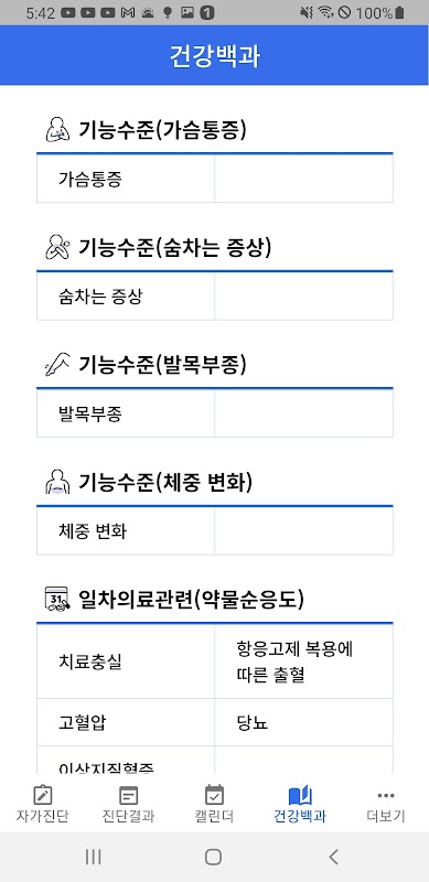 - Kendi Kendine Soru: Her semptom veya sağlık davranışı için bir anket aracılığıyla mevcut sağlık durumunuzu kaydedebilirsiniz.