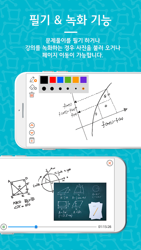 시간과 장소에 구애받지 않는 모바일 앱으로 내손안에서 수업이 이루어집니다.