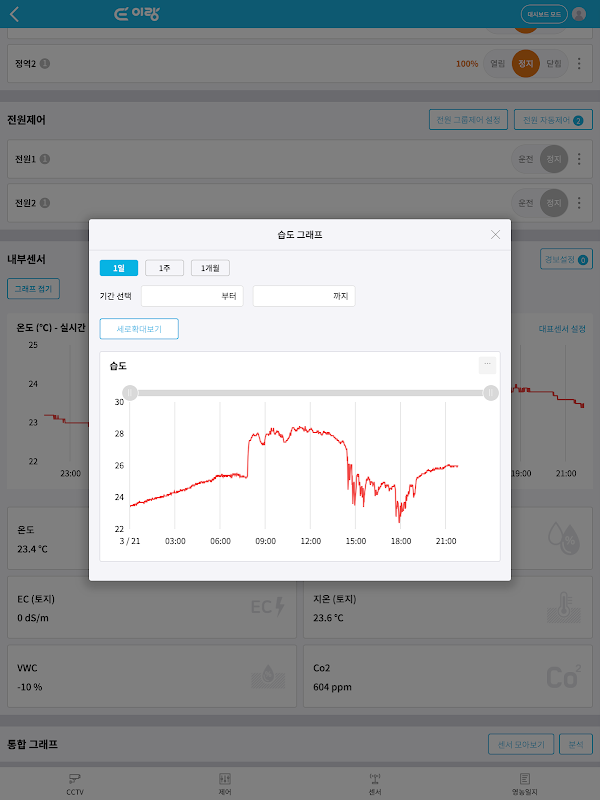 CCTV, çiftliğin durumunu kendi gözlerinizle görmenizi sağlar ve çeşitli sensörler, çiftlik sahibinin istediği sıcaklık, nem, EC, zemin sıcaklığı ve nem gibi çevresel değerleri gerçek zamanlı olarak kontrol etmenize olanak tanır.