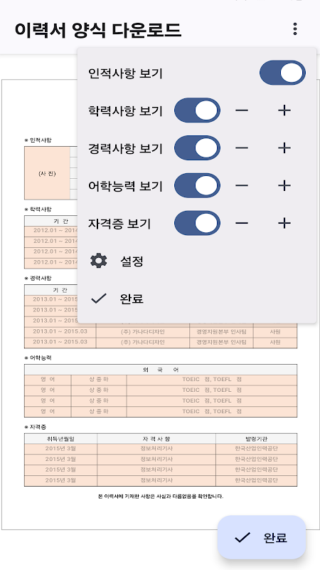 이력서 양식 다운로드: 이력서 작성, 이력서어플