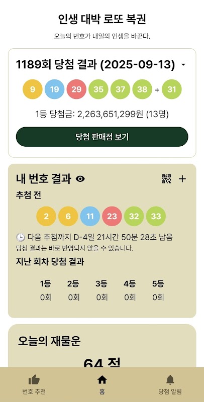 APKPure, virüssüz 인생 대박 로또 복권 - 당첨 알림, 추천 번호 APK indirmelerini sağlamak için imza doğrulaması kullanır.