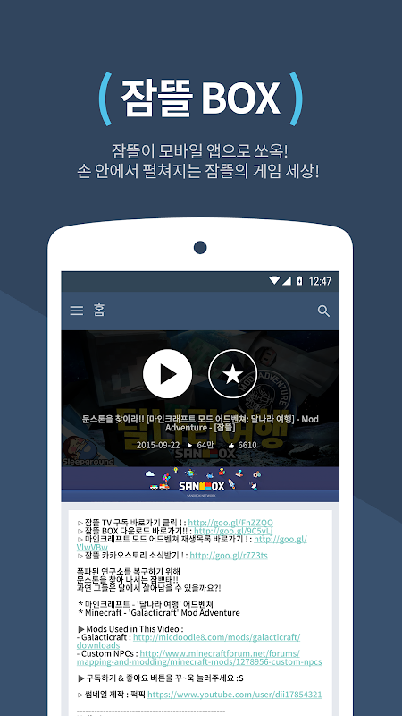 잠뜰 Box 에서 최신 동영상을 더욱 빠르고 편리하게 시청하세요 :S