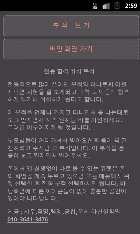- 스마트폰 바탕화면에 위젯으로 부적 보기 (유료 버전만 제공)