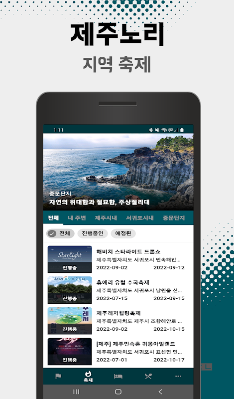 Jeju Nori, Kore Turizm Organizasyonu tarafından sağlanan turizm bilgi api'sini kullanarak Jeju Adası hakkında turistik bilgiler sağlar. Jeju Adası'ndaki turistik yerler, festivaller, konaklama yerleri ve restoranlar gibi Jeju Adası hakkında çeşitli bilgilere göz atabilirsiniz.