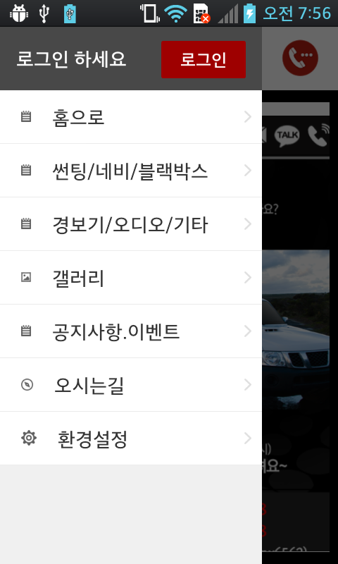제주 카스토리 앱에서는 썬팅/네비게이션/블랙박스, 경보기/오디오/기타, 갤러리, 공지사항/이벤트 등을 이용하실 수 있습니다.