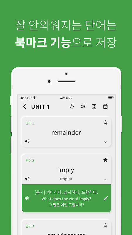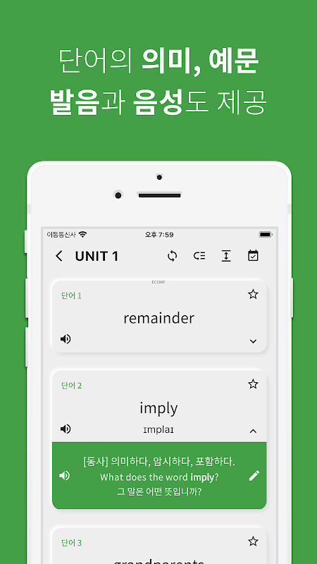 Uygulamayı indirdiğinizde tüm kelimeler uygulamayla birlikte yüklenir. Bu nedenle, ortaokul ve lise İngilizce kelime dağarcığını istediğiniz zaman, istediğiniz yerde çalışabilirsiniz.