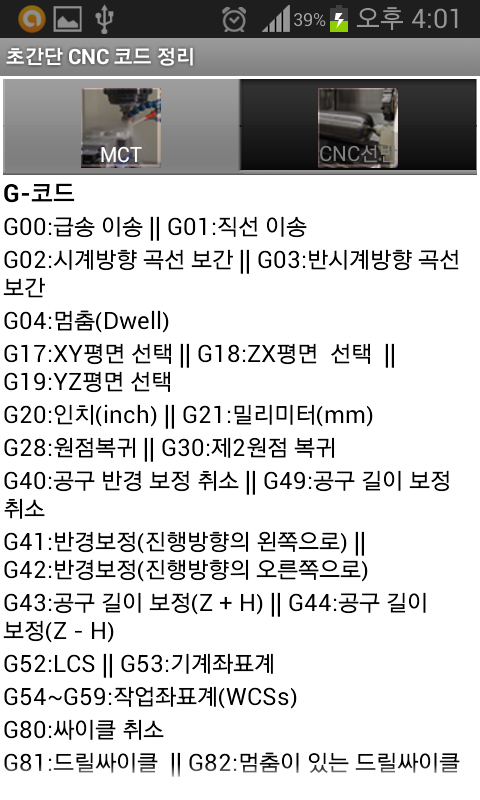 2.화면 상단의 탭을 이용하여 CNC 선반과 MCT 코드를 변경합니다.