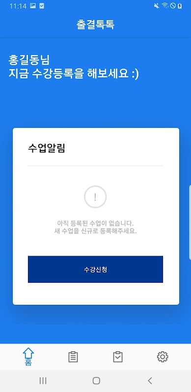 수강신청으로 수업을 등록하고 출석체크를 할 수 있습니다.