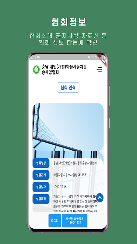 ■ Chungcheongnam-do bireysel (bireysel) yük vagonu taşımacılığı iş derneğinin ana sayfası, mobil cihazlarda kullanılabilmesi için bir uygulama olarak hayata geçirildi.