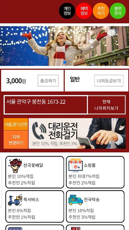 * 대리운전, 꽃배달,탁송, 퀵, 쇼핑몰이용시 적립해주는 어플
