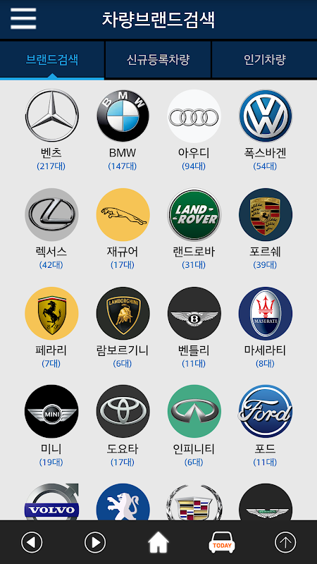 기능:브랜드 검색, 내차팔기, 매매상사소개, 카서울닷컴단지 소개