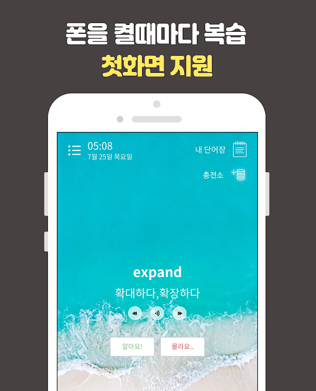 # 영단어를 더욱 쉽게 외울 수 있도록 첫화면 기능도 지원을 해요.