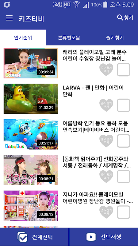 어린이 인기 동영상과 어린이음악 정리하여 편리하게 볼 수 있는 어린이동영상모음