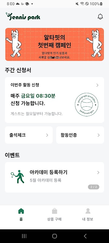 Bu, TennisPark üyelerinin tenis kortlarını kolayca rezerve etmelerini ve çeşitli etkinlikler düzenlemelerini sağlayan bir uygulamadır.