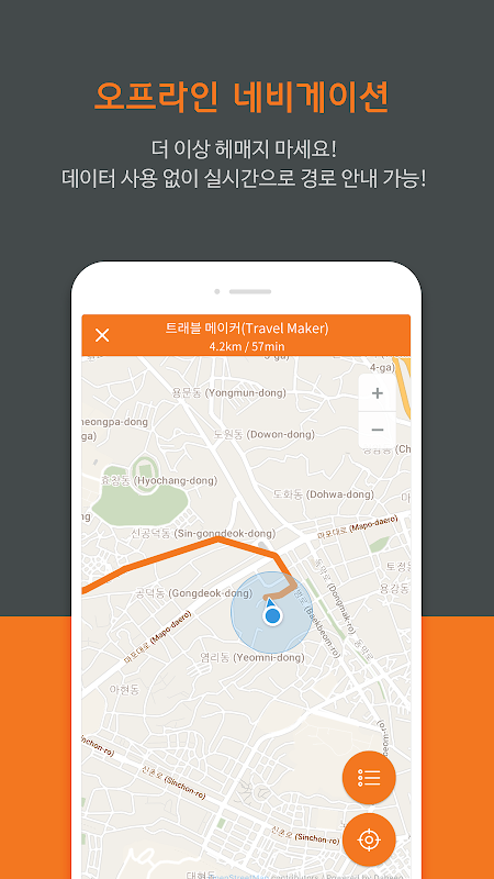 단 한 번의 다운로드로 내가 원하는 여행 장소를 데이터 사용 없이 실시간으로 빠르게 확인하고 찾아갈 수 있습니다.
