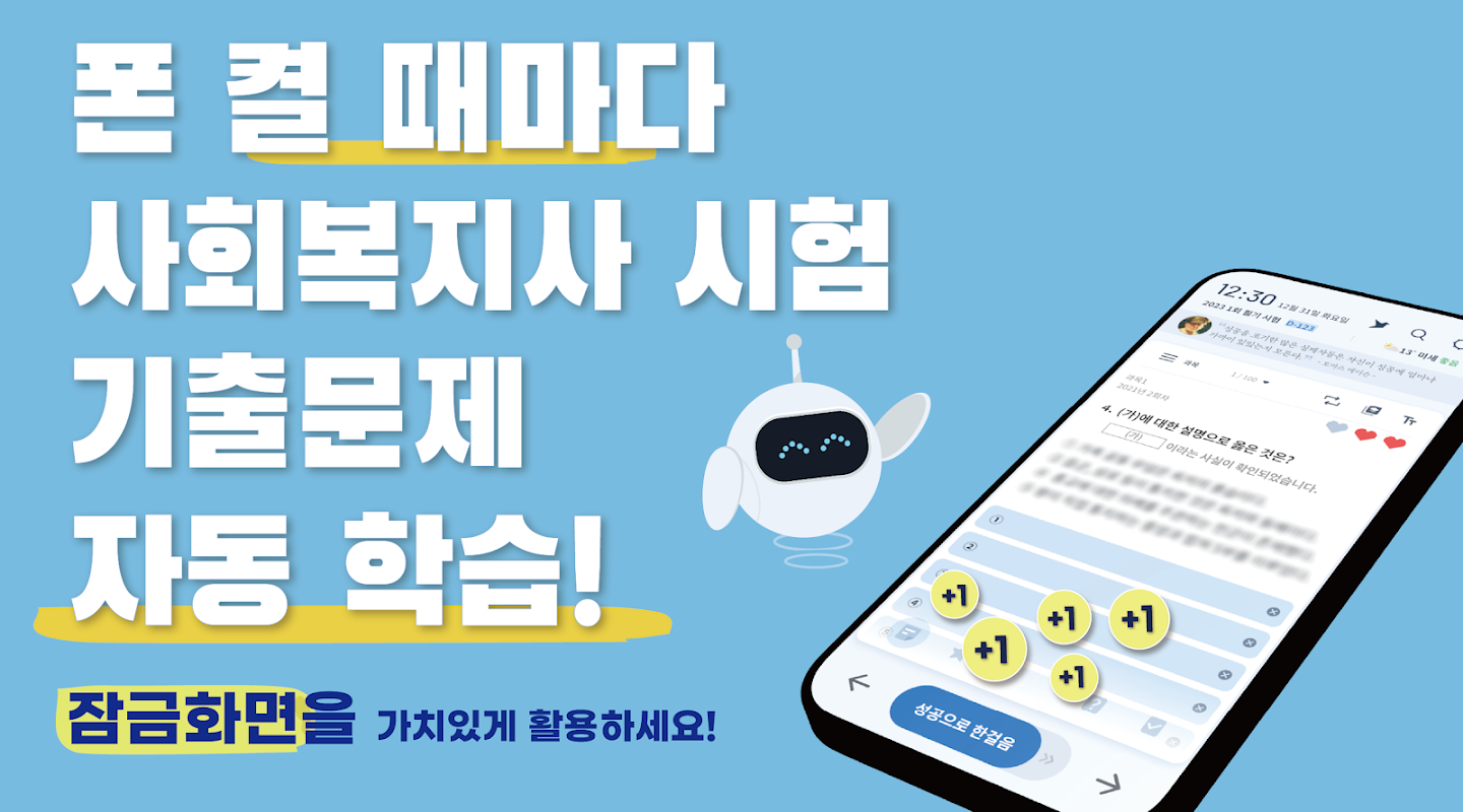 틈틈봇-사회복지사1급 (잠금화면 기출, OX문제)+알람 1.6.27