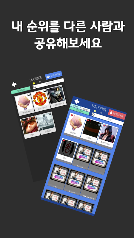 티어표를 만들고 다름 사람들과 의견을 공유해 보아요