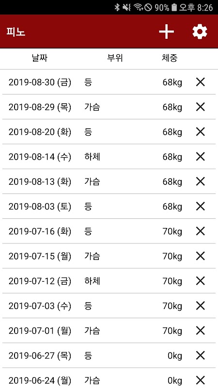 직접 중량운동과 유산소 운동의 세트와 횟수를 입력하여 관리할 수 있습니다.