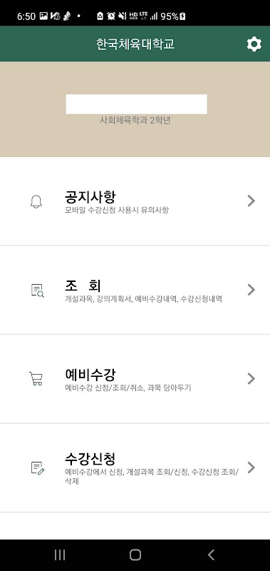 Bu, Kore Ulusal Spor Üniversitesi için bir mobil kurs uygulamasıdır.