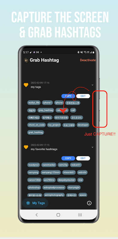 이제는 화면 캡처하세요! 화면캡처만으로 원하는 해시태그를 가져올 수 있습니다.