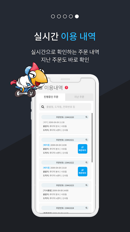 Hudadak'ın ezici sayıdaki 650 hızlı servis motosikleti ve en son teknolojisine dayanarak, tüm Seul ve Gyeonggi bölgesini tamamen kapsıyoruz. Kore'nin en hızlı ve en güvenli hızlı servisi artık mobil cihazınızda daha rahat kullanılabilir.