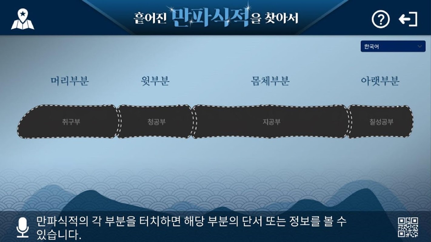 메인화면의 QR코드 버튼을 통해 정보를 수집하고 문제를 해결하여 만파식적의 조각을 획득하세요.