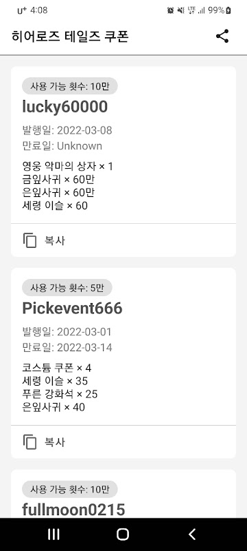 Uygulamada Heroes Tales kupon bilgilerini gösterebilir ve kuponları kaydedebilirsiniz. Yeni bir kupon düzenlendiğinde bir push bildirimi gönderilir.