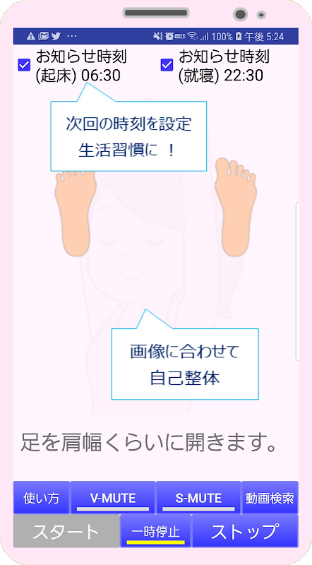 このアプリは、より気持ちの良い明日を迎えるられるよう、この運動(自己施術)を習慣化することをサポートするために作成されています。