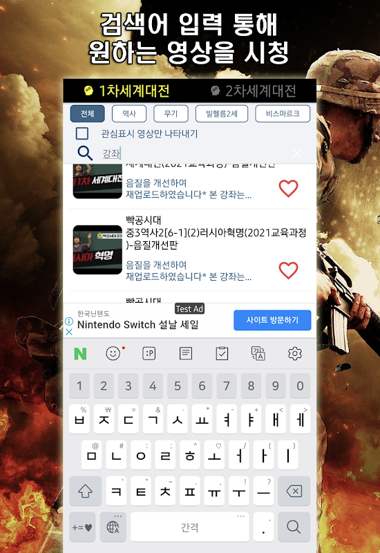 유익하고 재밌는 영상 1500개를 엄선해 어플에 담았습니다. 때론 전쟁의 참상을, 전쟁이 낳은 영향, 인물에 대해 재밌게 살펴보시기 바랍니다.