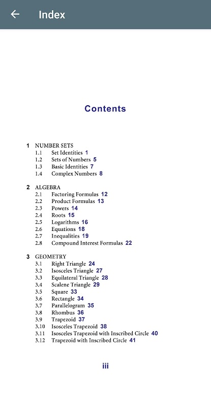 economics, physical science, and mathematics. The apps contains hundreds of formula, tables, and figures from Number sets,
