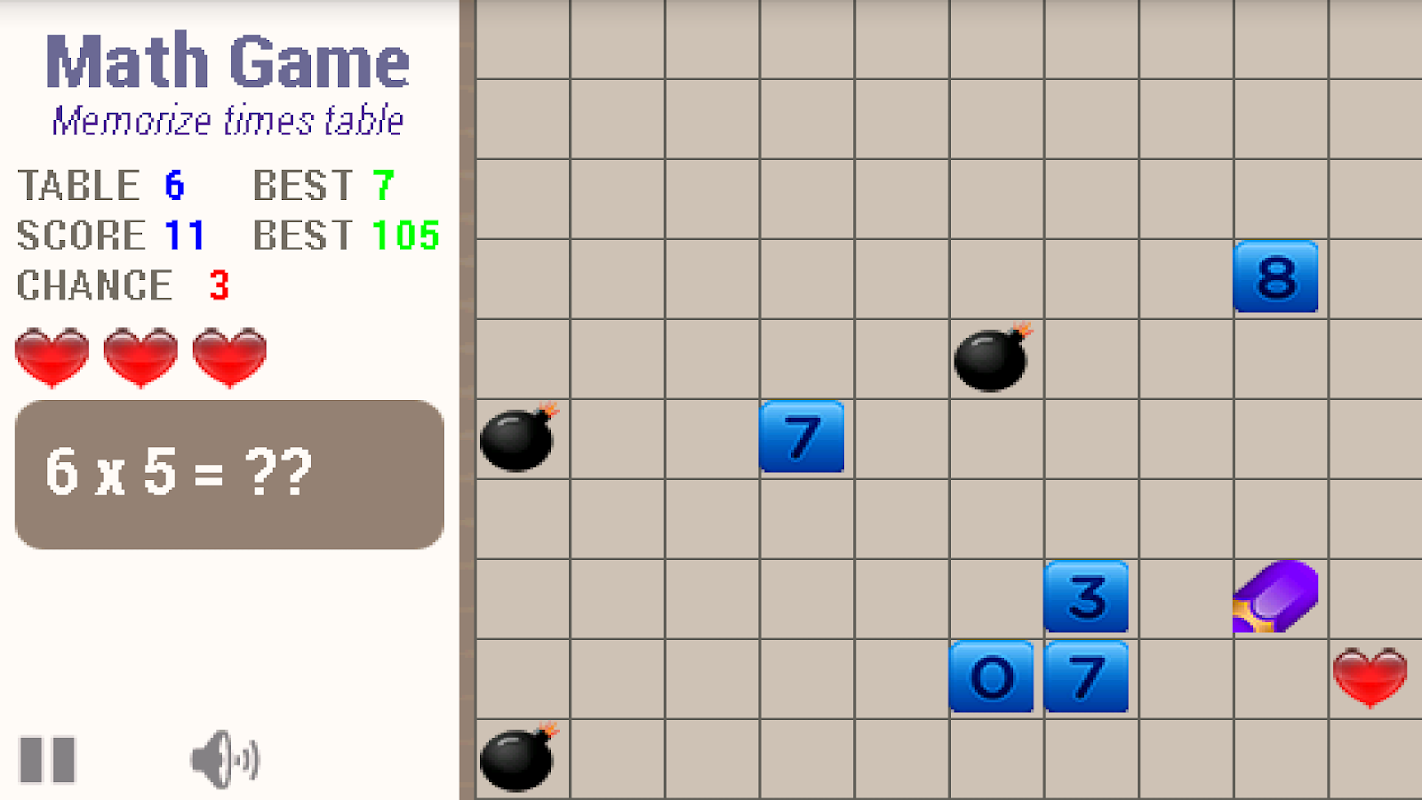 The game starts from the easy 2 x 9 times table up to more challenging 19 x 19 times table.
