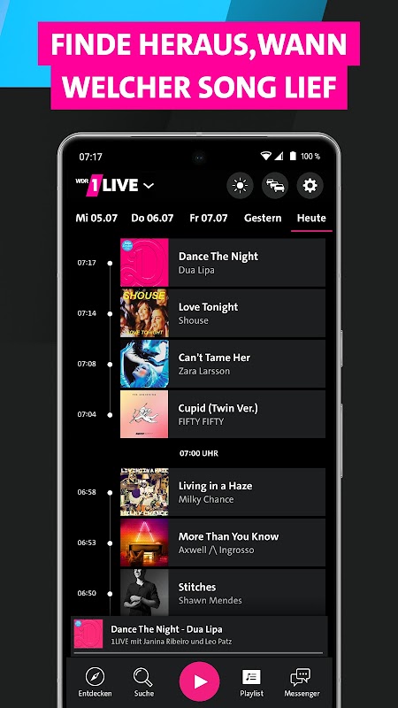 DJ Session, Plan B, Fiehe, Moving veya 1LIVE özel müzik programları gibi en iyi müzik programlarını istediğiniz zaman dinleyin.