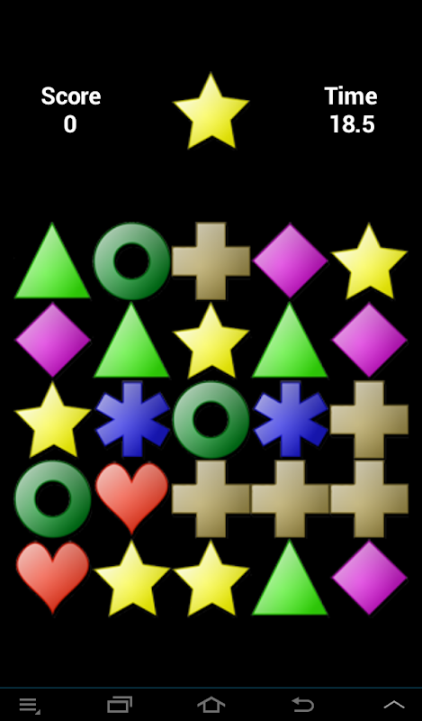 Mümkün olduğunca çok sayıda doğru şekle dokunmak için 20 saniyeniz var. Dokunduğunuz her doğru şekil için 0,1 saniye kazanırsınız, tahta hedef şekilden temizlendiğinde verilir. Bildirilen istatistikler; Puan, Yüksek Puan, Toplam Dokunma Sayısı, Oynanan Oyunlar, o oyun için Hata sayısı ve o oyun için Doğruluk yüzdesidir.