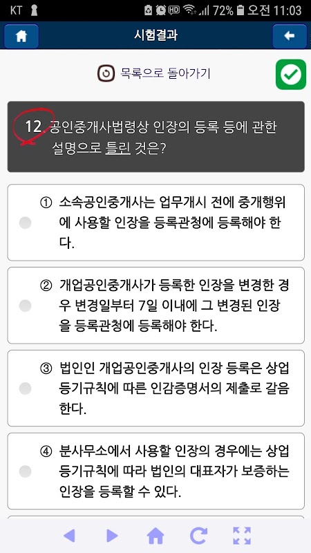 - 오답다시풀기, 전체다시풀기, 시험반복응시 기능을 모두 제공합니다.