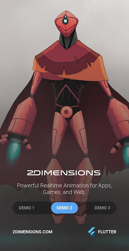 This 3-part demo shows that Flutter can seamlessly combine user interface elements with 60fps animated graphics in real-time. The animations are created using 2Dimensions’ animation tools Nima (raster-based) and Flare (vector-based), both of which export to Flutter.