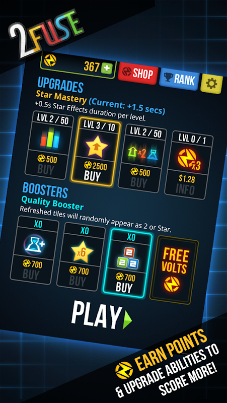 2FUSE zamana karşı oyuncuların maç ve onlar muhtemelen 60 saniye içinde mümkün olduğunca çok sayıda benzer simgeleri kaynaşmasına çukurları hızlı ve öfkeli bir arcade tarzı bir oyun. Her tamamlanan döngü böyle oyuncunun oyun ve skoru artırmak için 'Time Freeze', 'Çini Yanık' ve 'Çini Büyüme' gibi özel artırır bahşeder.