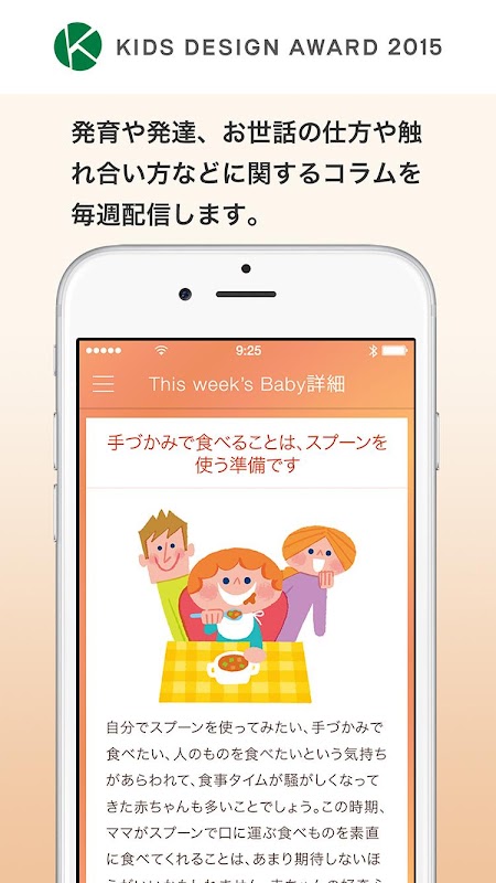 毎週届く子供の成長コラム「This Week’s Baby」や「育児Q&A」、「お役立ち情報」。育児手帳は、多彩なコンテンツで不安や疑問も多い育児生活をしっかりサポートします(例 : 授乳や予防接種の情報など)。