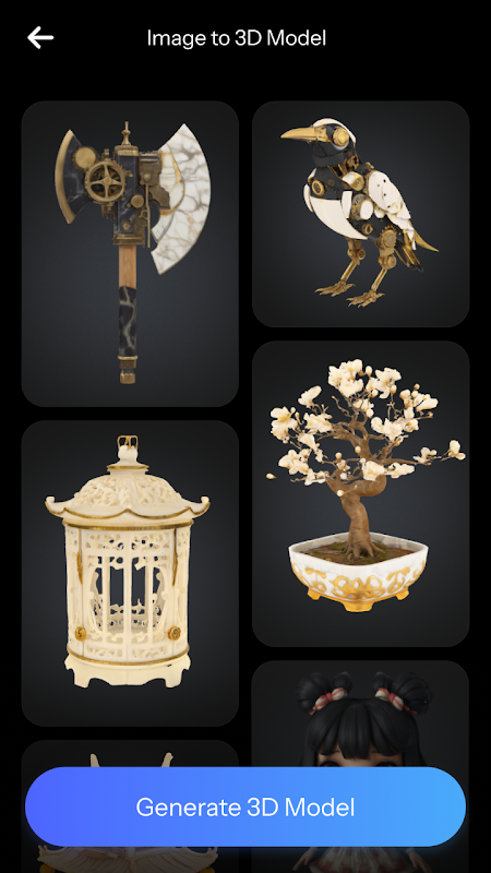 3DIFY: Görüntüden 3B Modele, resimleri ve metni sadece birkaç dokunuşla muhteşem 3B modellere dönüştürmek için kullanılır. Hayal gücünüzü serbest bırakın! 3DIFY, 3B modellemeyi sanatçılar, tasarımcılar ve ilgilenen herkes için kolay, hızlı ve eğlenceli hale getirir.