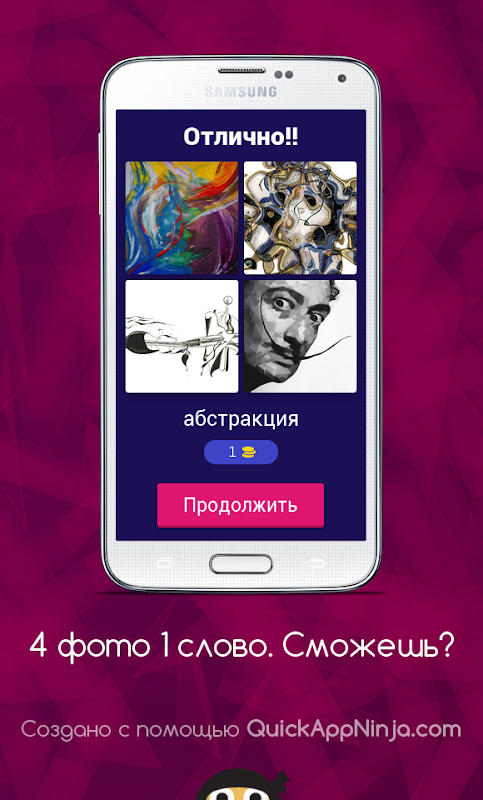 Всем известная игра "4 фотки 1 слово". С непростыми словами, приятным интерфейсом и возможностью использовать подсказку, если зашел в тупик.