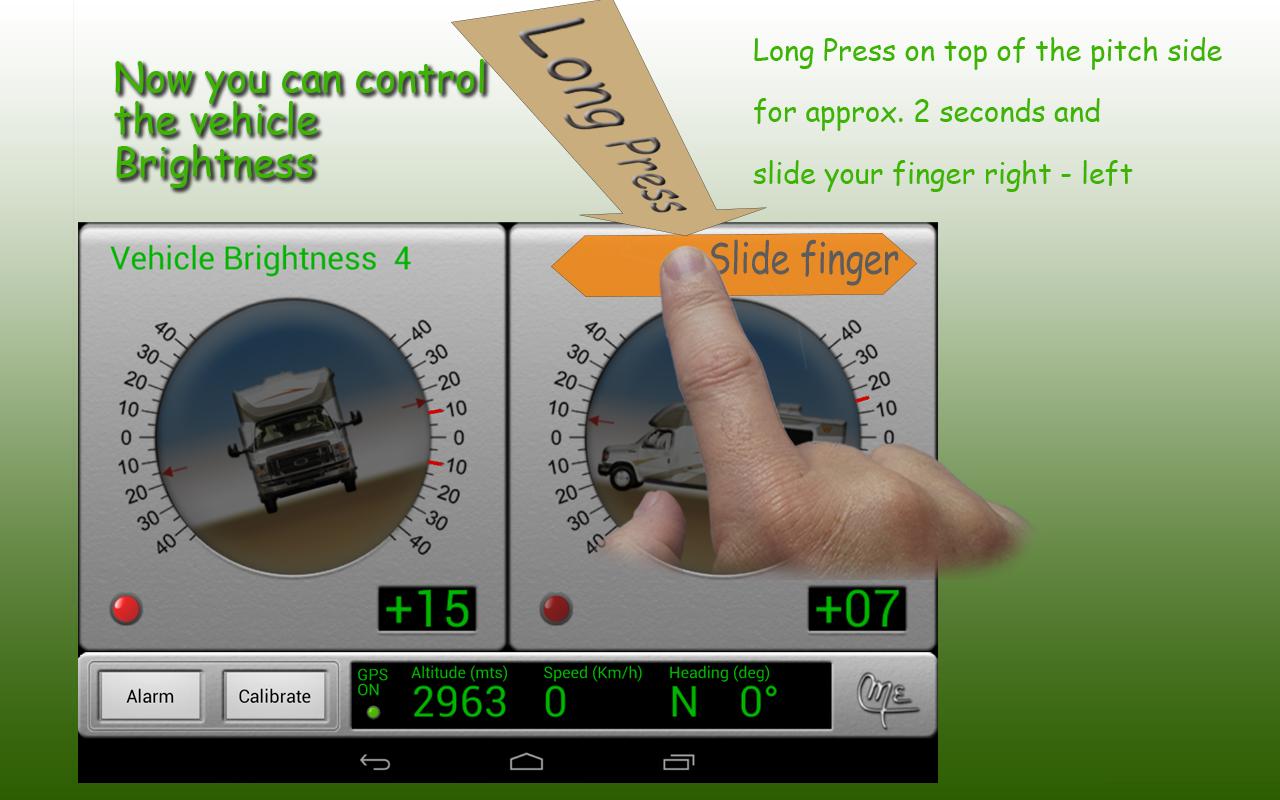 Android cihazların çoğu günümüzde sahip dahili sensör dayanarak, yapay bir ufukta eğerek tercihinize bir 4x4 off-road araç bir çizim / resim gösterir.