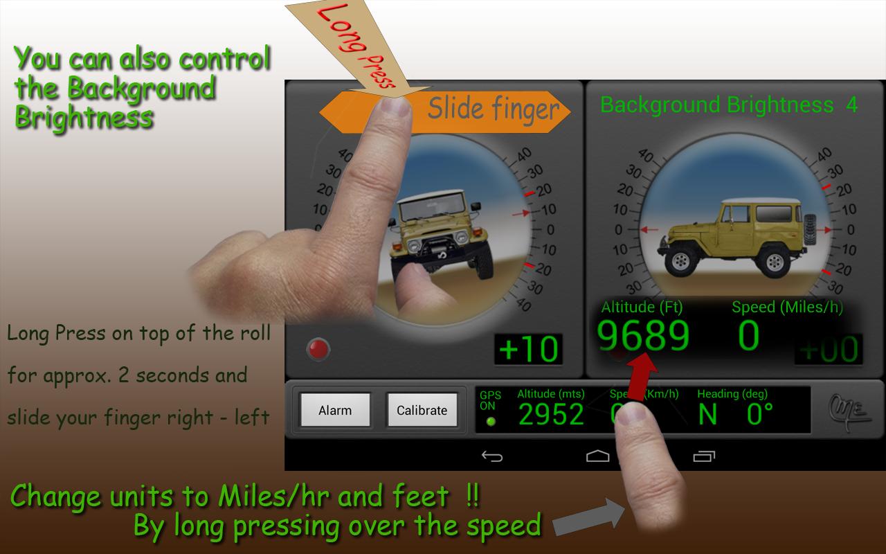 Bu o değil !! Android cihaz bir GPS alıcısı varsa, ayrıca yüksekliği, hızı ve bir pusula önlemleri tadını çıkarabilirsiniz. (PRO versiyonu) (Pusula manyetik değildir ama esaslı gps, bu nedenle sadece hareket çalışır).