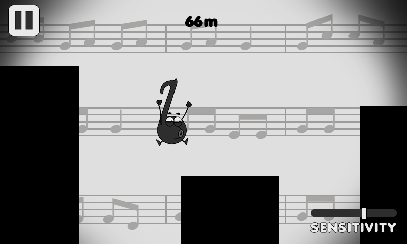 An eighth note is musical note played for one eighth duration of whole note. So 8 eighth notes amount to one whole note. In this game, you need to use your voice to control the movement of the note. Try to run and jump as longest as possible before you die. Yasuhati!
