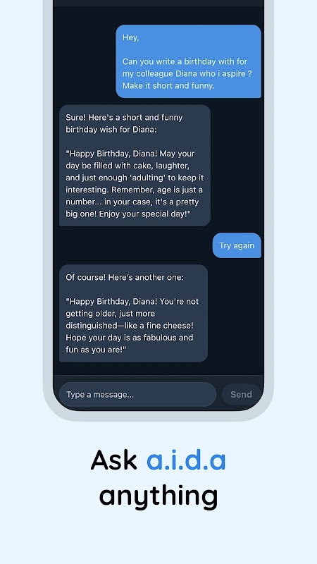 a.i.d.a'ya istediğinizi sorun: *"Bu ayın market harcamalarını göster"den* *"10 dakikalık vegan akşam yemeği öner"e* kadar.