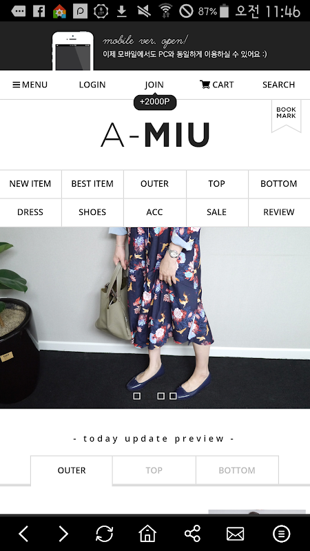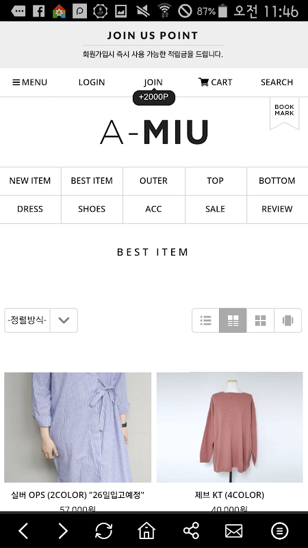 본 App은 에이미우 웹사이트 쇼핑몰과 100% 연동되어