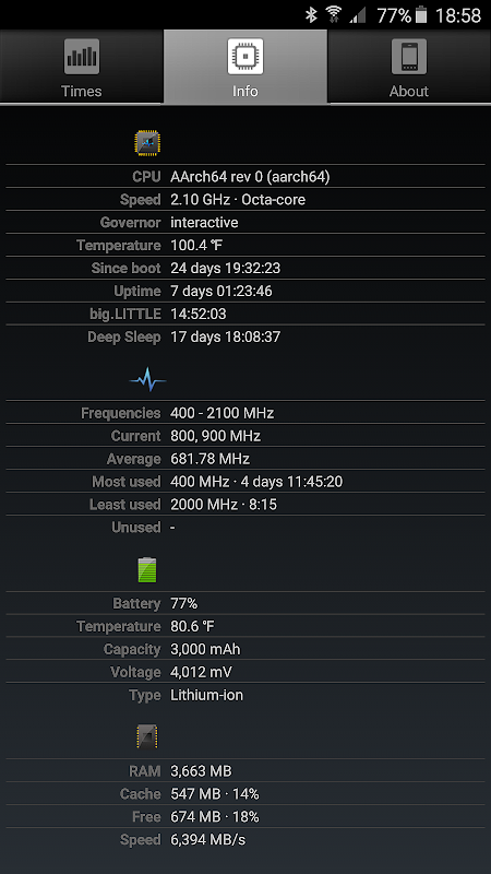 A1 CPU Tool - free CPU monitor App that shows time the CPU spends in each performance / frequency state. View CPU load from the last boot split by supported CPU frequencies for your Android phone or tablet. Displays time spent in the Deep Sleep, and ultra low frequencies.